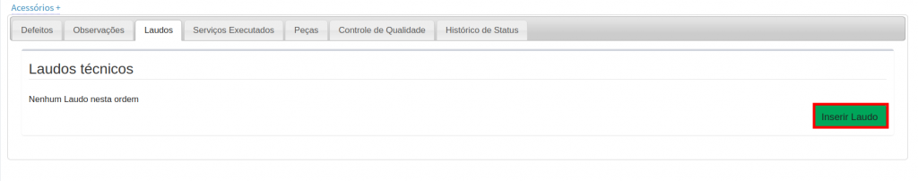 12. Na aba Laudo, clique em Inserir Laudo.