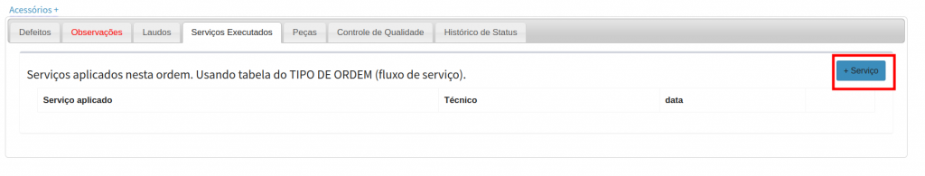 Clique em Serviço, para adicionar o serviço prestado.