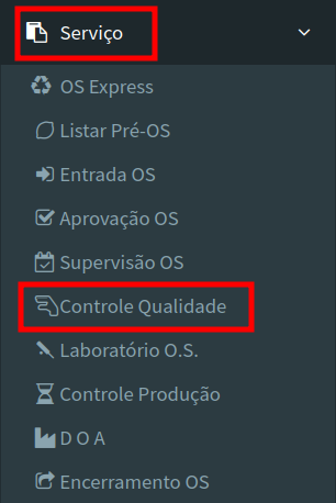 Em seguida retorne ao módulo Serviços seguido de Controle de qualidade.