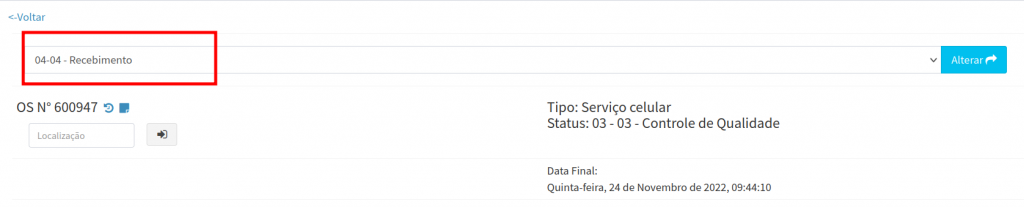 Após preencher as informações, cliquem em alterar status para finalizar a pré O.S