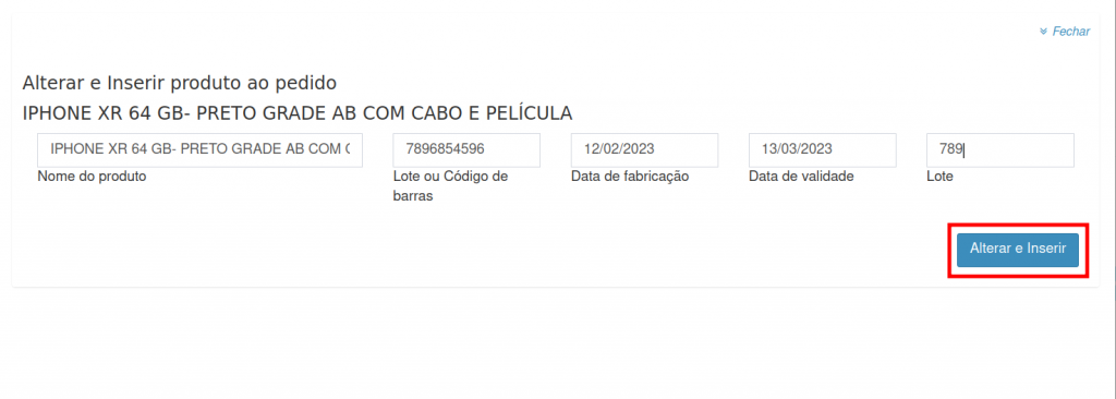 Caso selecione a opção de Repetição com alteração, você pode realizar algumas alterações no produto antes de inserir no pedido, preencha os campos necessários: