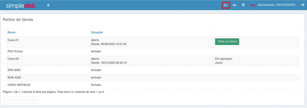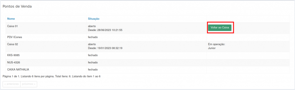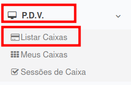 - No menu principal, localizado no canto esquerdo da tela, vá em PDV, seguido de Listar Caixa.