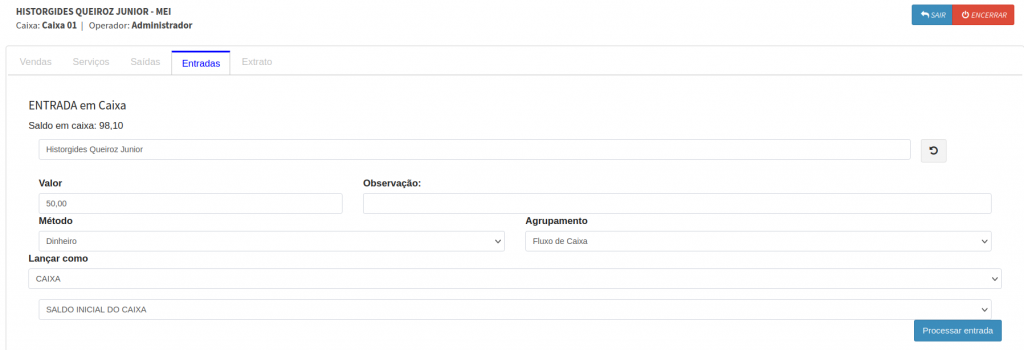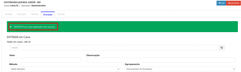 Vale lembrar que para realizar o saldo inicial no caixa é necessário que o caixa já esteva aberto.