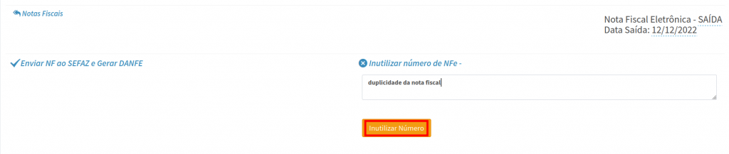 Inutilizando a nota fiscal.