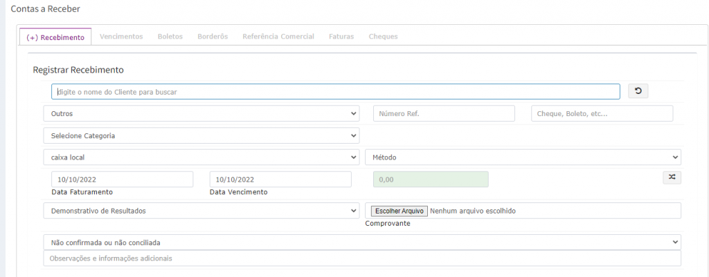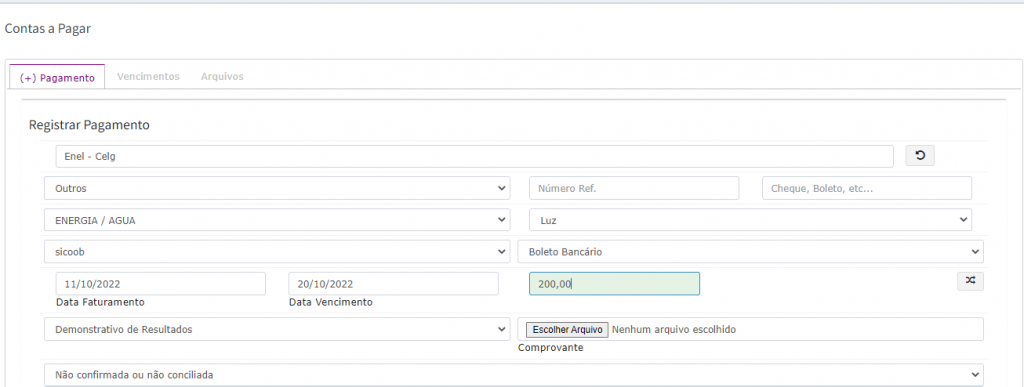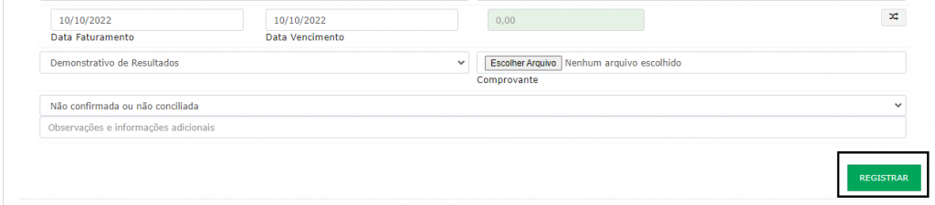 - Informe se o pagamento entrara como conciliado, selecionando uma das opções;