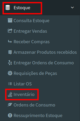 - No menu principal, localizado no canto esquerdo da tela, acesse o módulo Estoque.