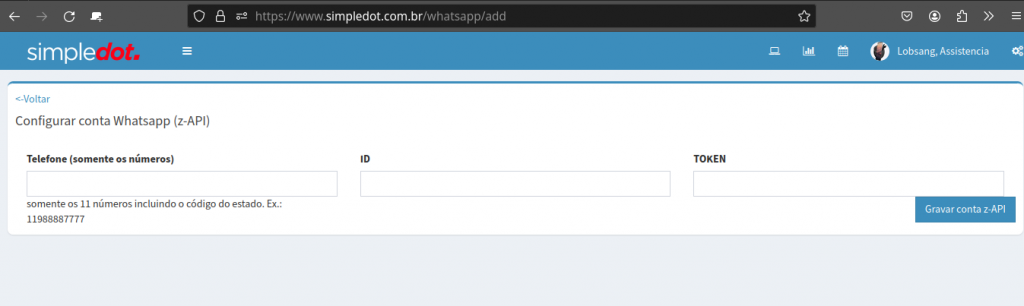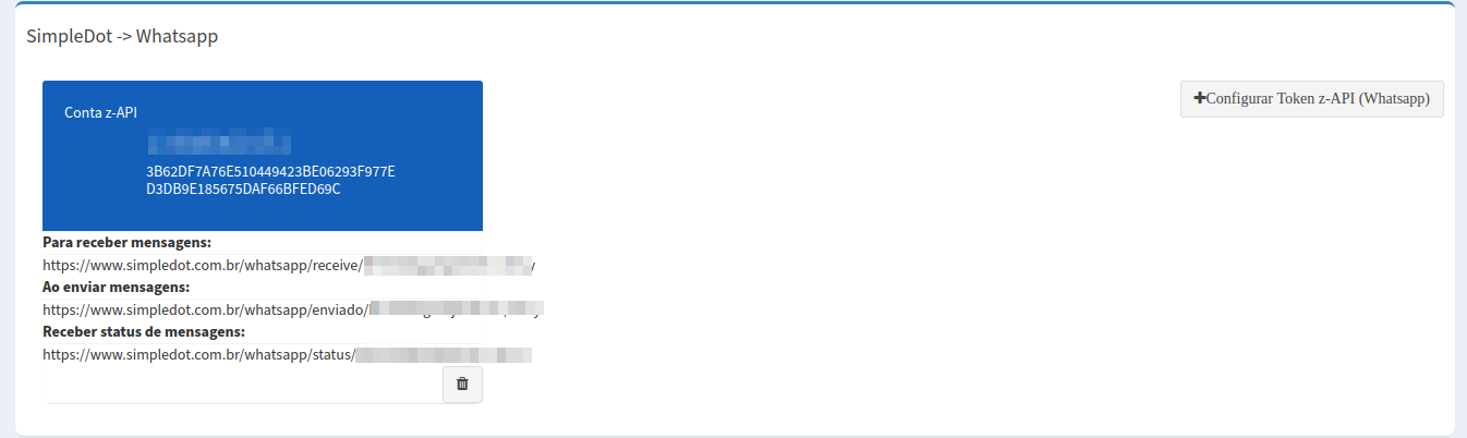 As configurações de Numero, ID e TOKEN são solicitados pelo financeiro no cadastro do seu numero e inseridos no sistema.