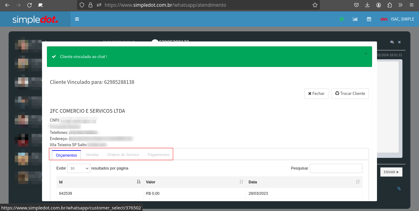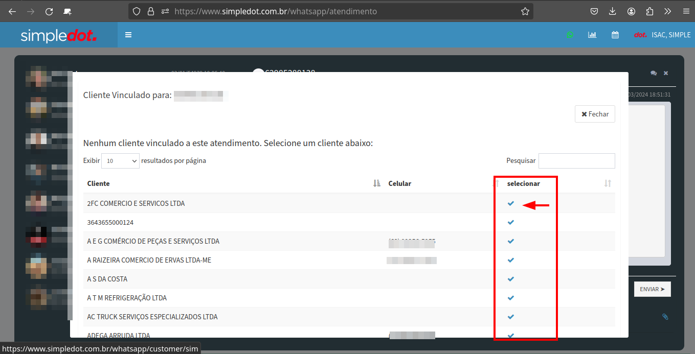 Abrindo o campo para selecionar onde esta setado para vincular o cliente e tratar as seguintes informações