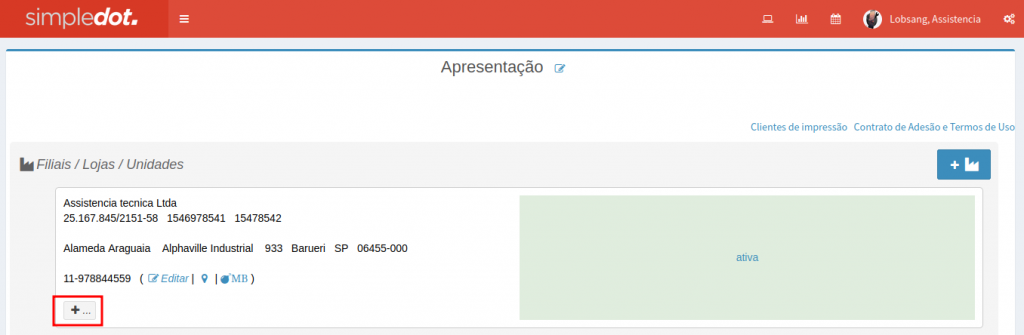 Para abrir uma O.S pelo Formulário Web primeiro ir no + da empresa.