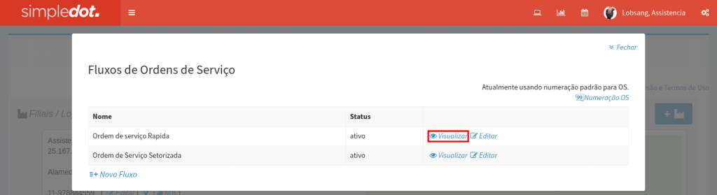 Em fluxo de ordem de serviço selecionar Visualizar.