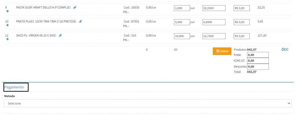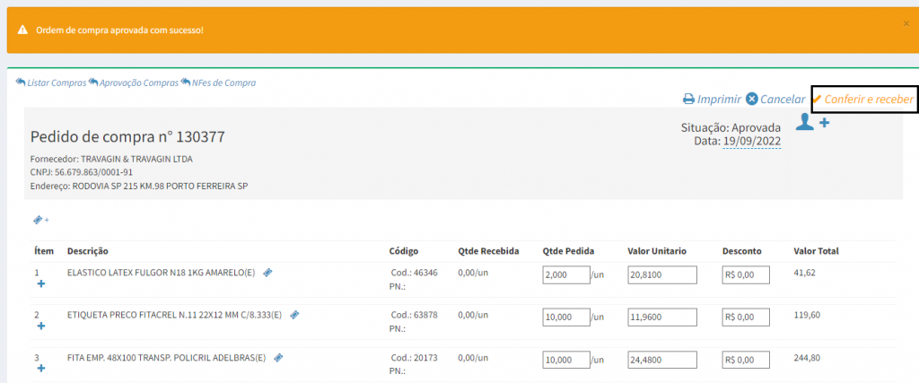 Você será direcionar para tela de dar entrada no estoque e gerar o financeiro do contas a pagar.