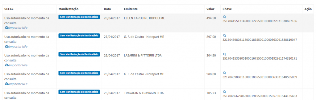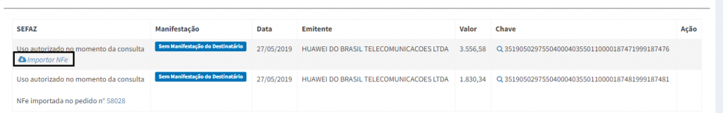 Você será direcionado para página contendo toda a listagem dos arquivos XML’s de compra contra o CNPJ de sua empresa. Desta forma os arquivos ficarão apenas registrados, portanto, não ira gerar movimentação no estoque e financeiro.
