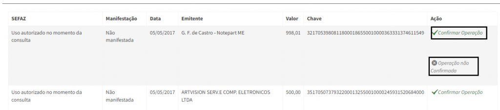 É necessário informar a Receita Federal se você aceita ou recusa a nota de compra contra o seu CNPJ.
