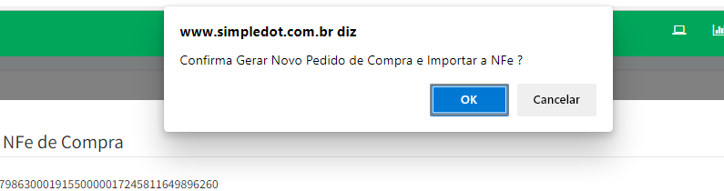 O sistema ira exibir uma caixa de diálogo contendo a seguinte mensagem “Confirmar gerar novo pedido de compra e Importar a NFe?“. Clique em OK.