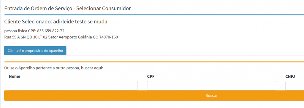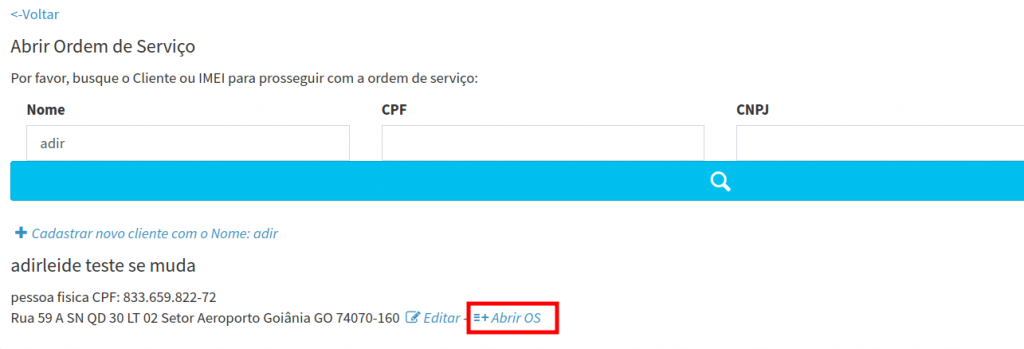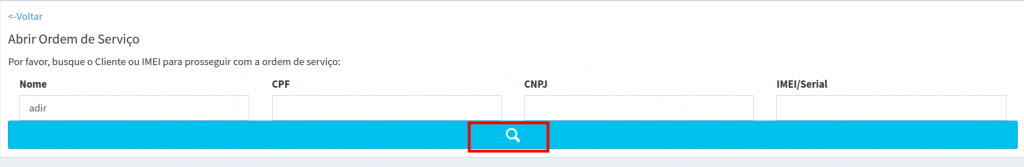 3. Você será direcionado para a tela de Abrir ordem de serviço, onde sera necessário buscar o cliente para prosseguir com a ordem de serviço.