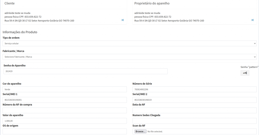- No campo atendente, informe o vendedor que está realizando a ordem de serviço.