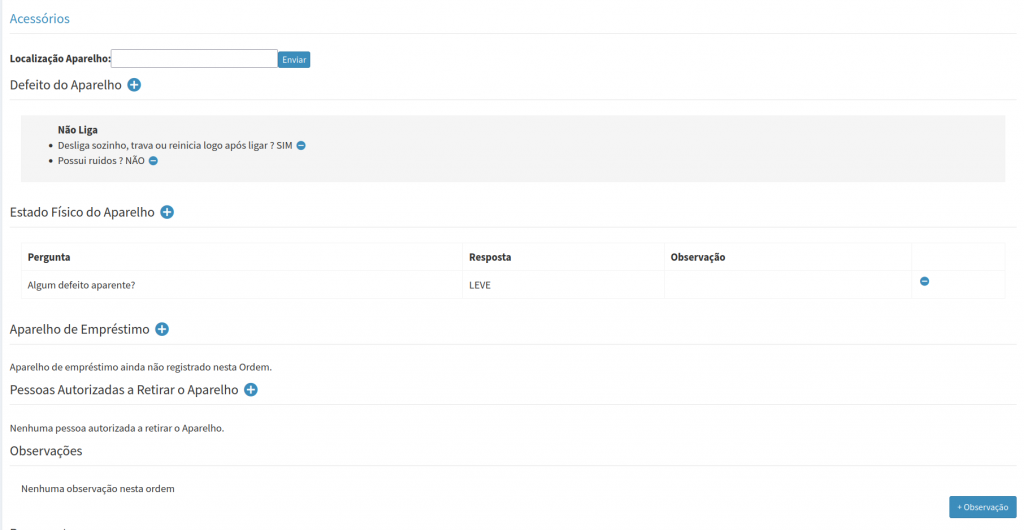 6. Você será direcionado para a tela de Entrada de O.S , onde deve preencher os campos: