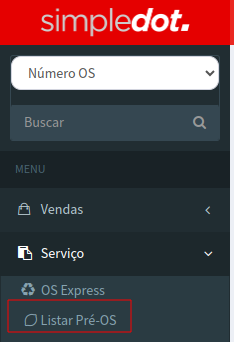 No menu principal , acesse o módulo Serviço, seguido pelo modulo de LIstar Pré-Os