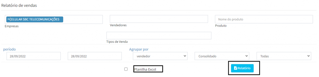 Se desejar, no campo Vendedor selecione o vendedor específico para emissão do relatório a partir da sua venda;