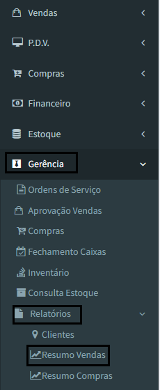 - Em seguida, clique em Relatórios, depois vai em Resumo de Vendas.