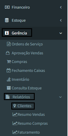 1. O primeiro passo para gerar o relatórios de clientes é acessar no Menu Principal a opção Gerência.